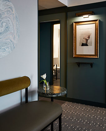 Design details throughout the hotel create an atmosphere of intimacy and intrigue that you'll notice as soon as you set foot in our lobby. Natural materials like wood and stone are complemented by warm rich tones that invite you cozy up to the hearth in our living room/library and make yourself at home. Archways yield a sense of transformation between different areas and if you find yourself wanting to explore the Kimpton Saint George, go with that instinct. We've created bold spaces with elements meant to engage our guests and pique their sense of discovery.